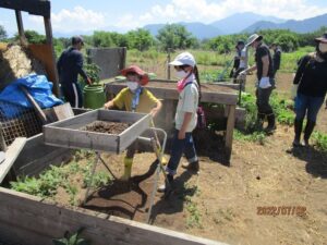 ※コンポストで生ごみを分解して堆肥を作り、野菜を栽培しています。