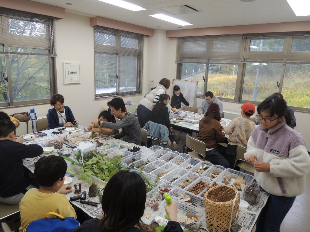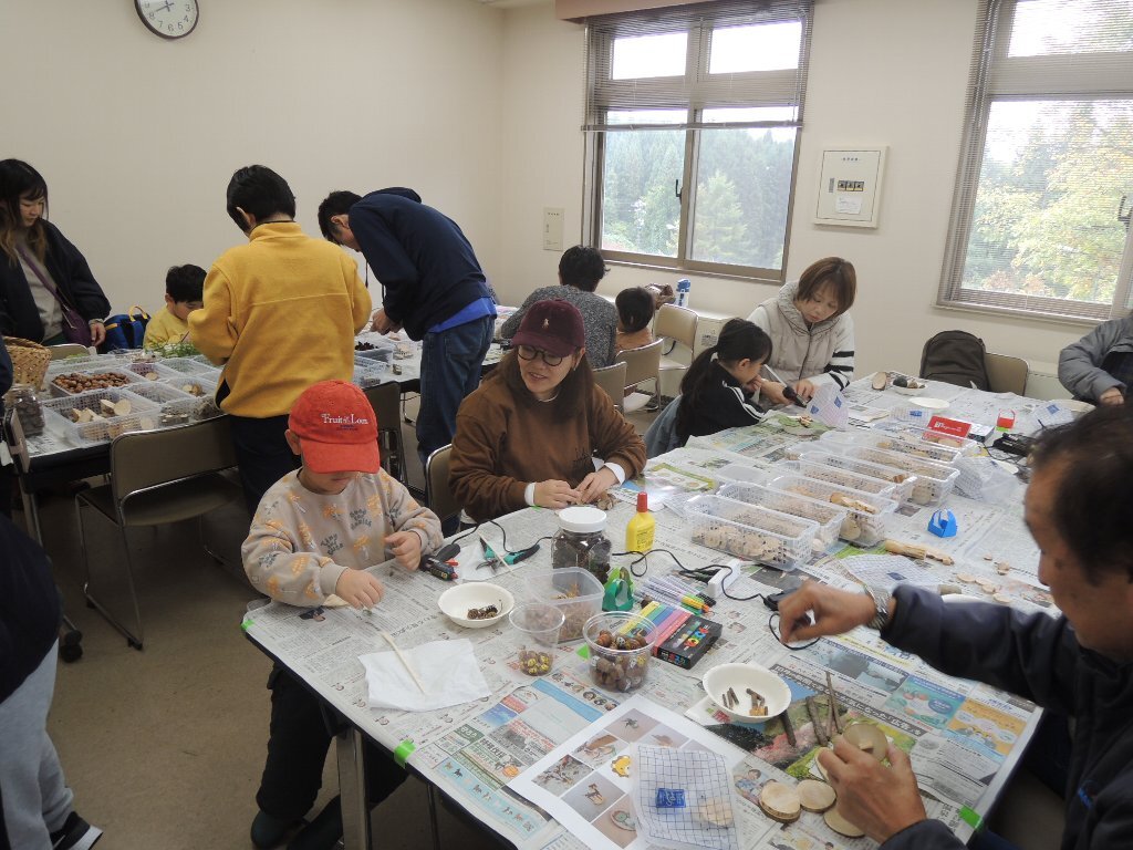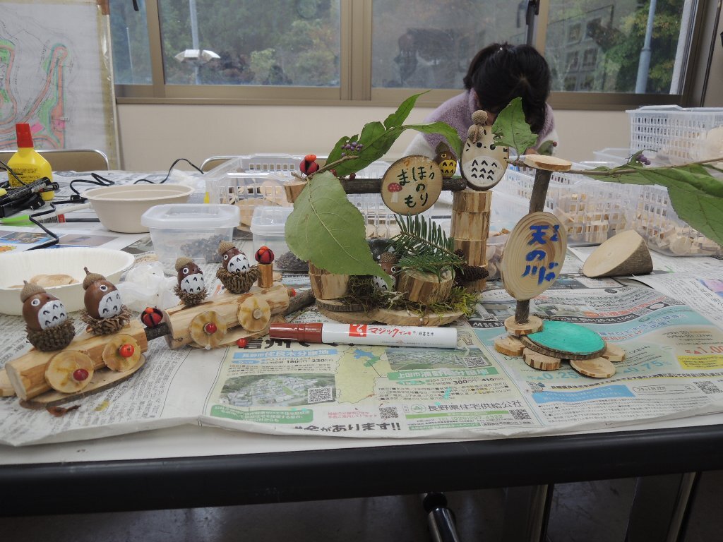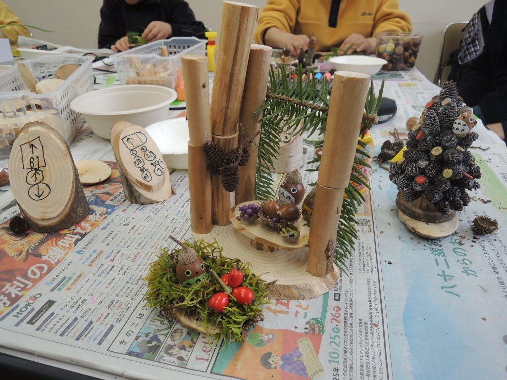 材料には「市民の森」で採取されたドングリや小枝を使いました。