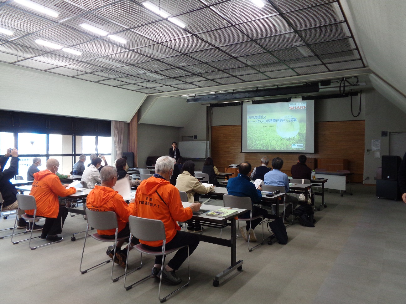 当イベントでは、地球温暖化対策を普及啓発するため、シャープエネルギーソリューション株式会社様にご協力をいただき最新のエコ機器について紹介するとともに、当会のプロジェクト活動について発表しました。