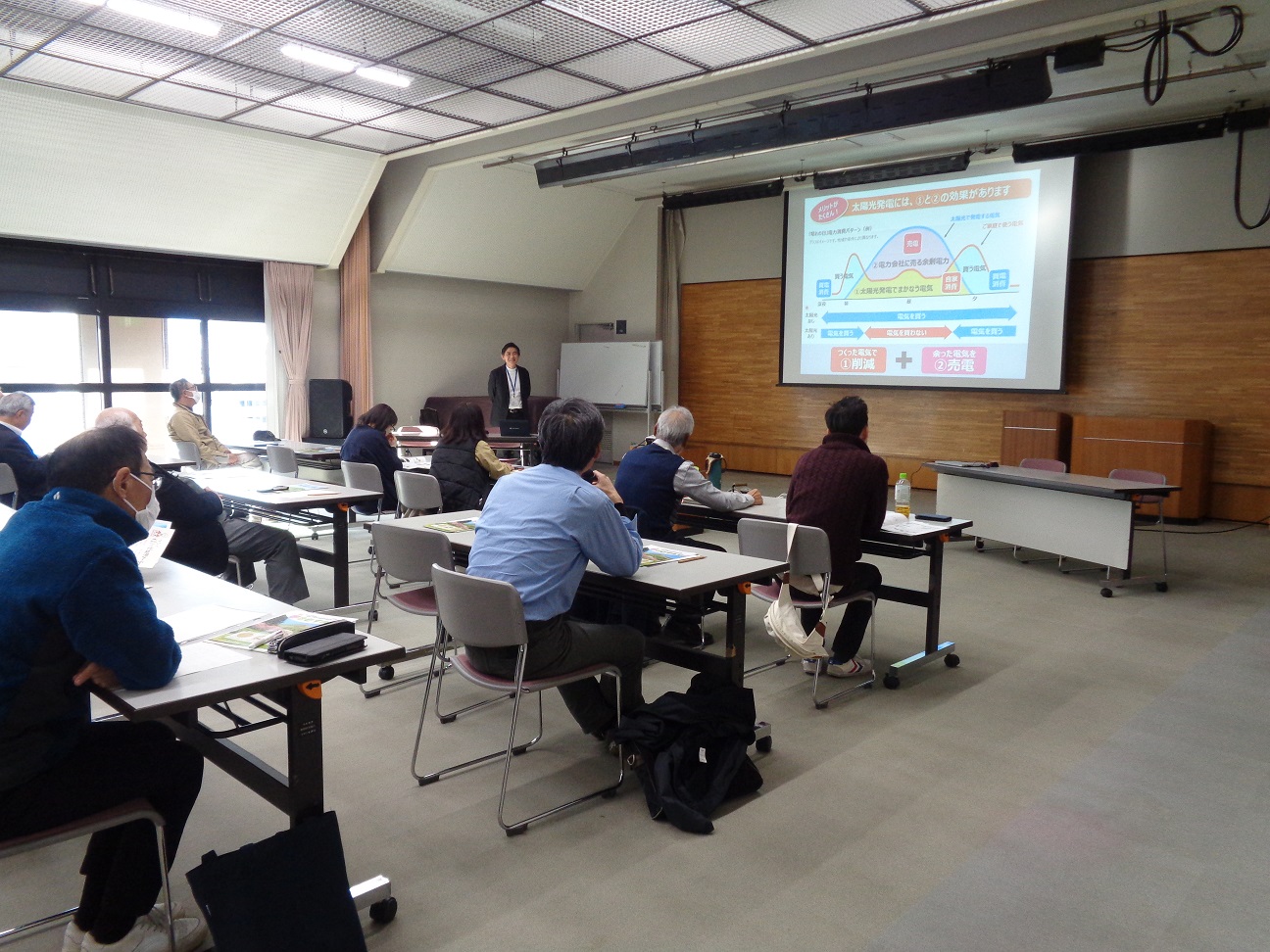 家庭の電気代という身近な例をあげて「効率的な電気(エネルギー)の使い方」や「再生可能エネルギー」などについて、わかりやすく講演をいただきました。